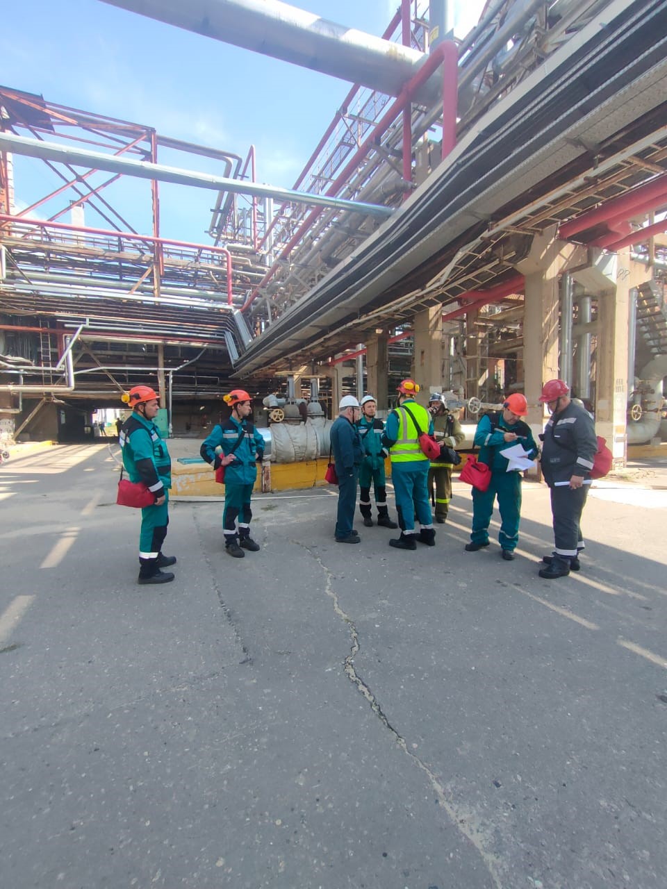 Тренировочное учение проводилось на установке производства мономеров эмульсионных каучуков, растворных каучуков, факельного хозяйства, приёма и хранения аммиака по вводной – повышение давления в колонне Кт-163 выше 0,6 МПа.