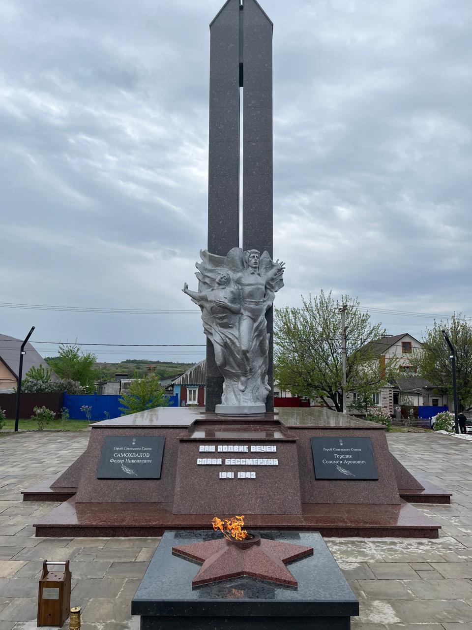 Мемориал построен в рамках всероссийской эстафеты памяти «Храним Огонь Победы» и увековечения солдатской доблести воинов, героически павших при защите Отечества в годы Великой Отечественной войны. Объект оснащен современным оборудованием, которое обеспечит бесперебойную подачу газа к вечному огню братской могилы, где покоятся 390 советских воинов, павших в боях за город с 1941 по 1943 год.